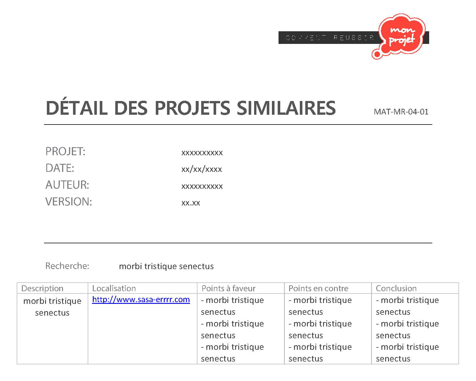 Le résultat de cette démarche se résume dans le détail des projets similaires: